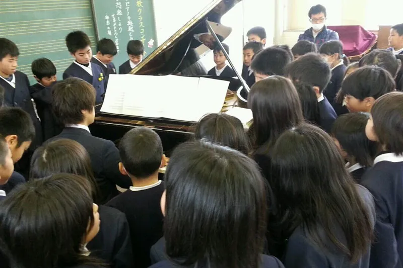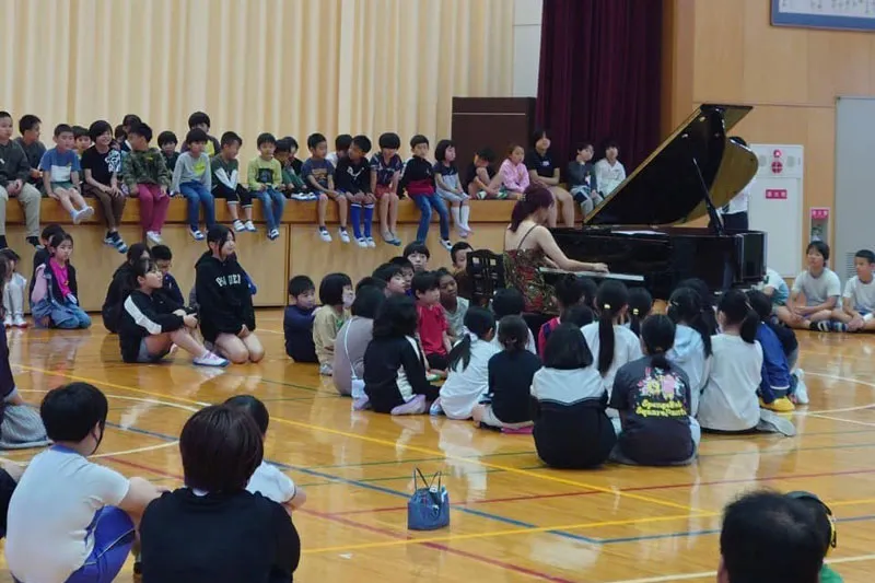2013年からは、ステップの翌日にアドバイザーの先生にご足労いただき、糸島市や福岡市西区の小学校で「学校クラスコンサート」を開催するようになりました。ピアノを習っている子だけでなく、できるだけ多くの子どもたちに生の音楽にふれてほしい——そんな願いから始めた活動も今年で13年目を迎えました。学校の先生方も「楽しかった」「貴重な経験だった」と覚えてくださっていて、快く受け入れてくださる学校も少しずつ増えてきました。これからも大切に続けていきたいと思っています。